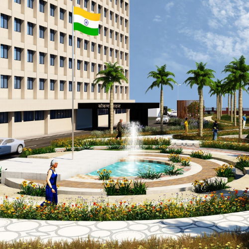 The façade design reflects the regional identity, subtly incorporating cultural elements. Kokan Bhavan stands as a representation of purposeful architecture, delivering both operational efficiency and an inspiring visual presence.