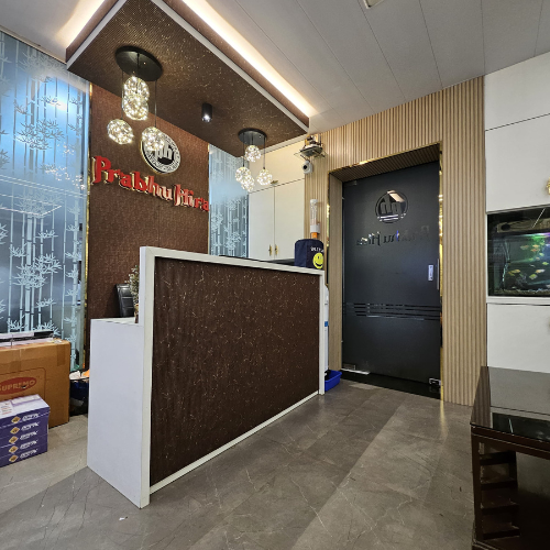 This office interior design for Prabhu Hira Cold Storage in Sanpada combines corporate professionalism with a touch of contemporary elegance.